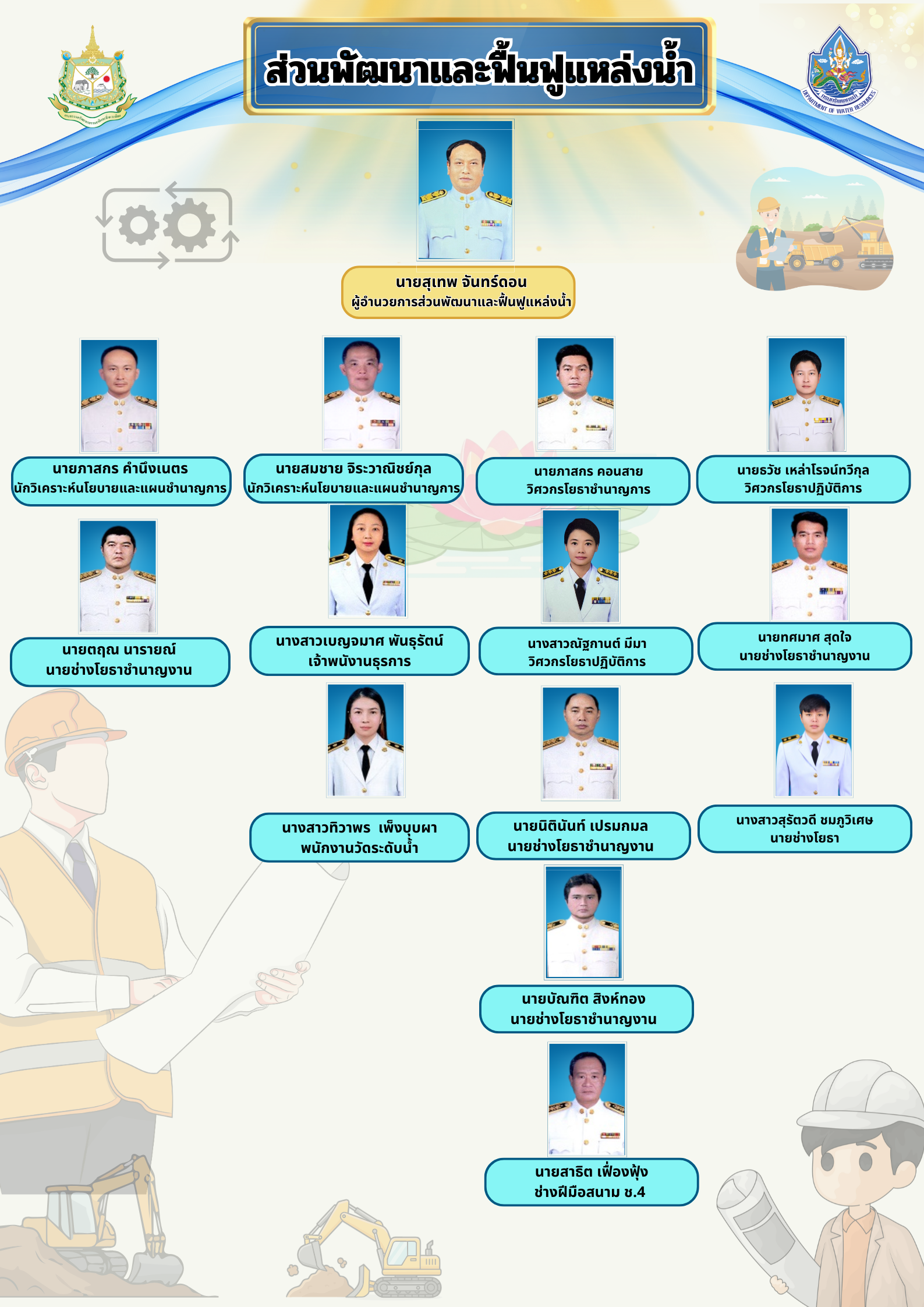 ๒) ควบคุมและดำเนินการโครงการพัฒนาแหล่งน้ำ โครงการป้องกันและบรรเทาภัยจากน้ำ โครงการเพิ่มประสิทธิภาพแหล่งน้ำ โครงการอันเนื่องมาจากพระราชดำริ และโครงการอื่นตามที่กรมมอบหมาย