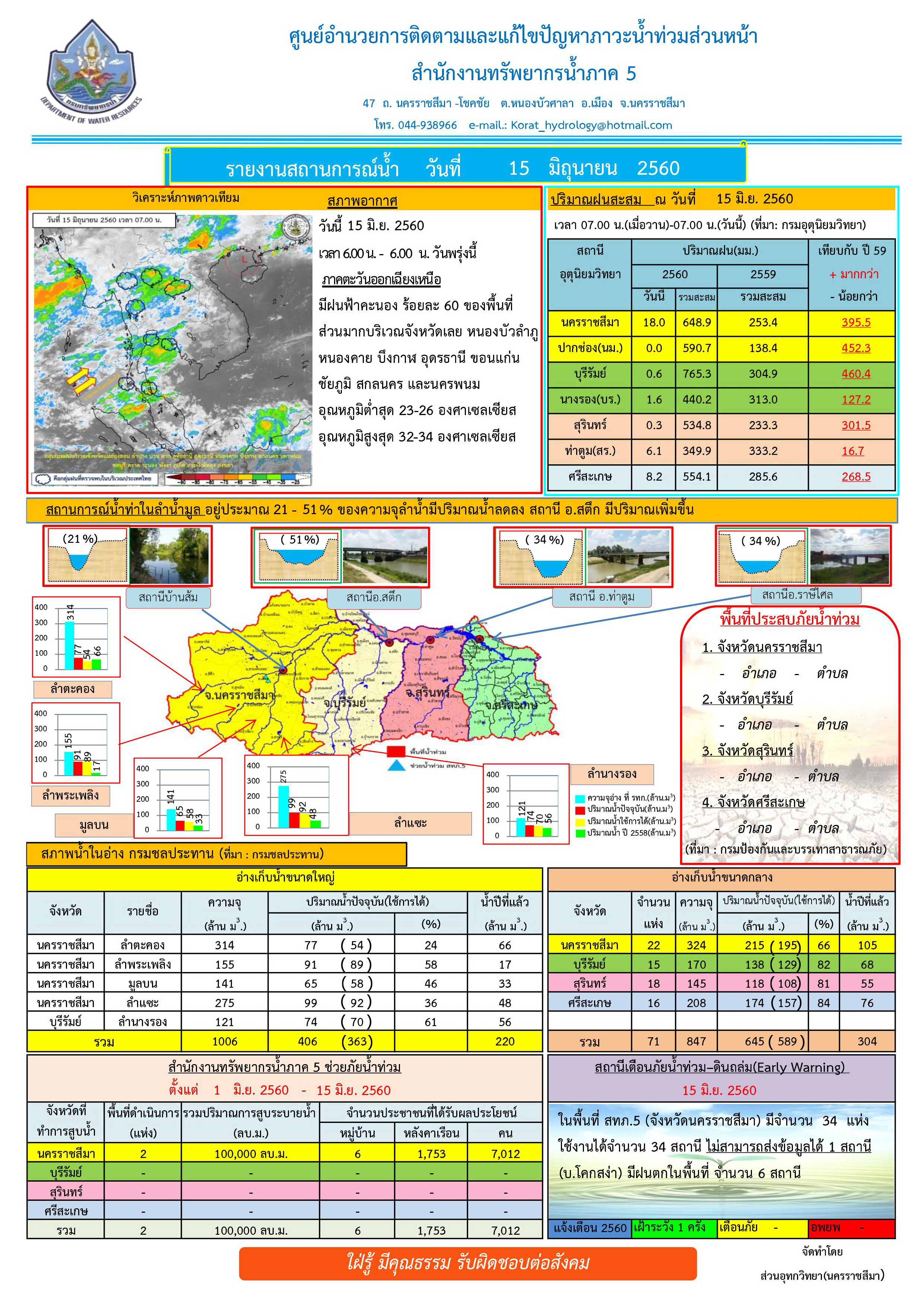 สถานการณ์น้ำประจำวันที่ 15 มิ.ย. 2560