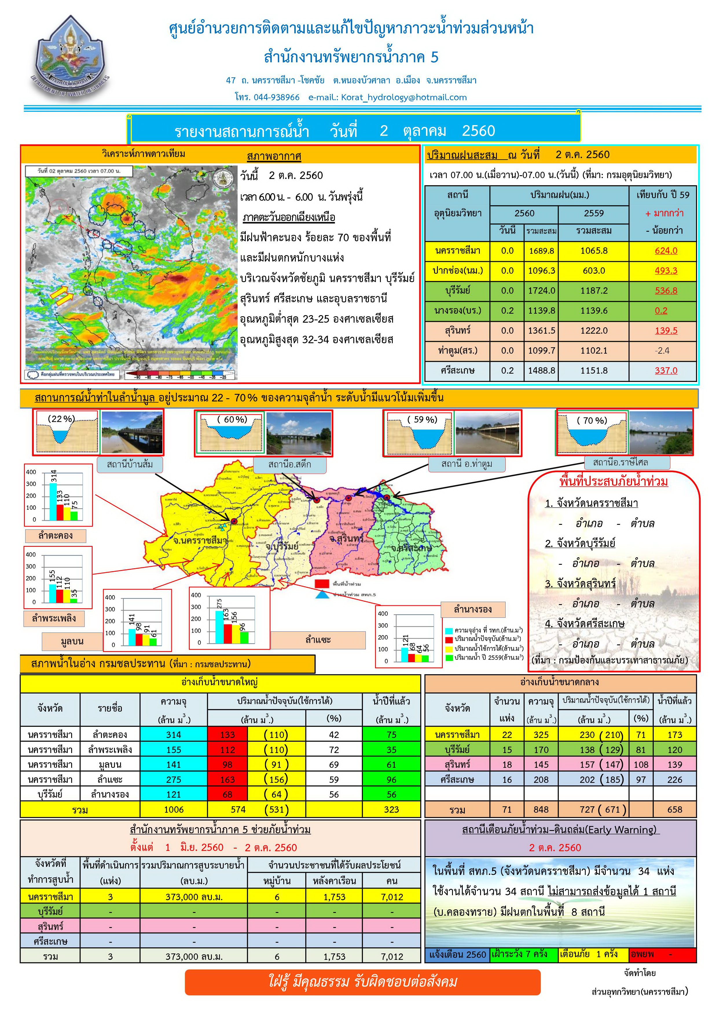 สถานการณ์น้ำประจำวันที่ 2 ต.ค. 2560